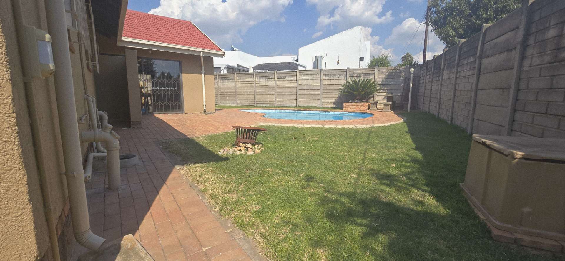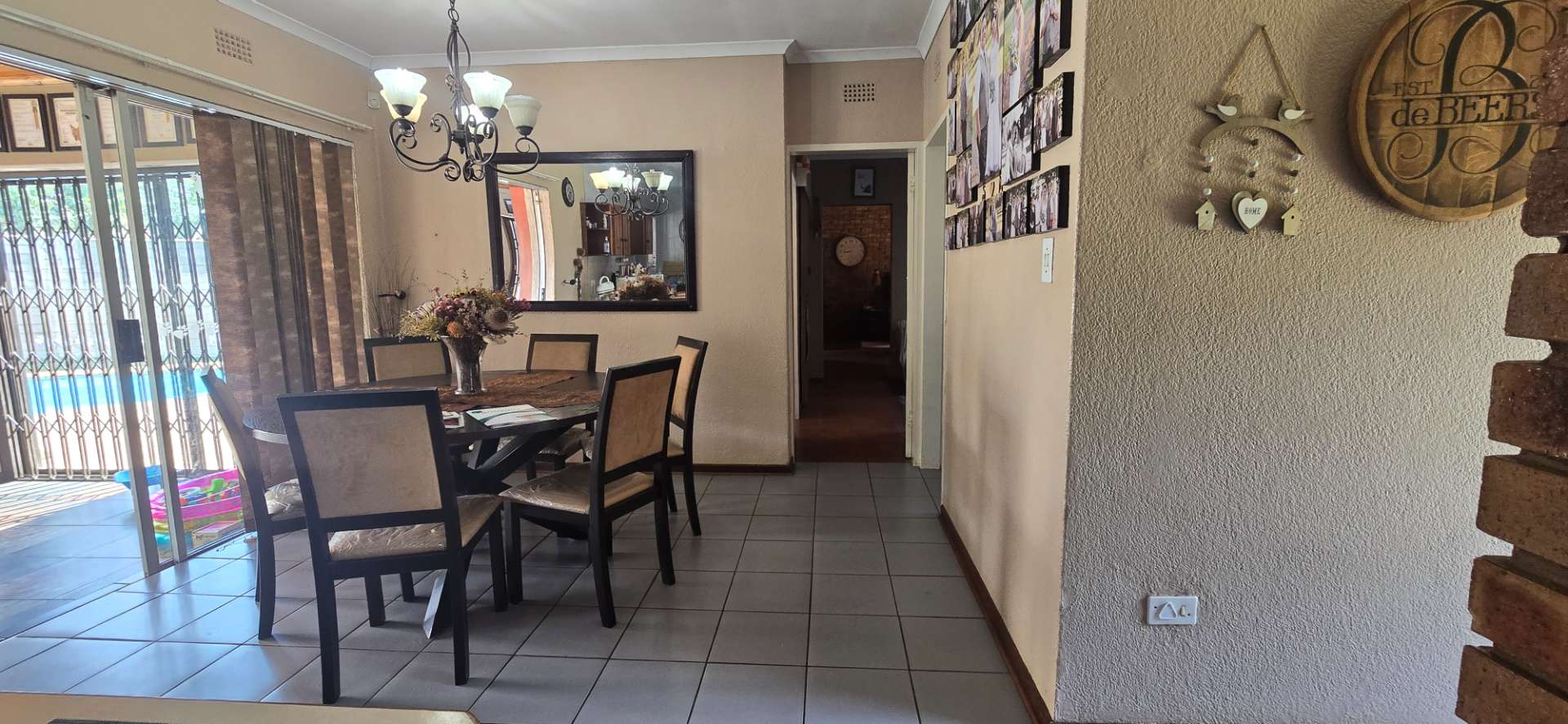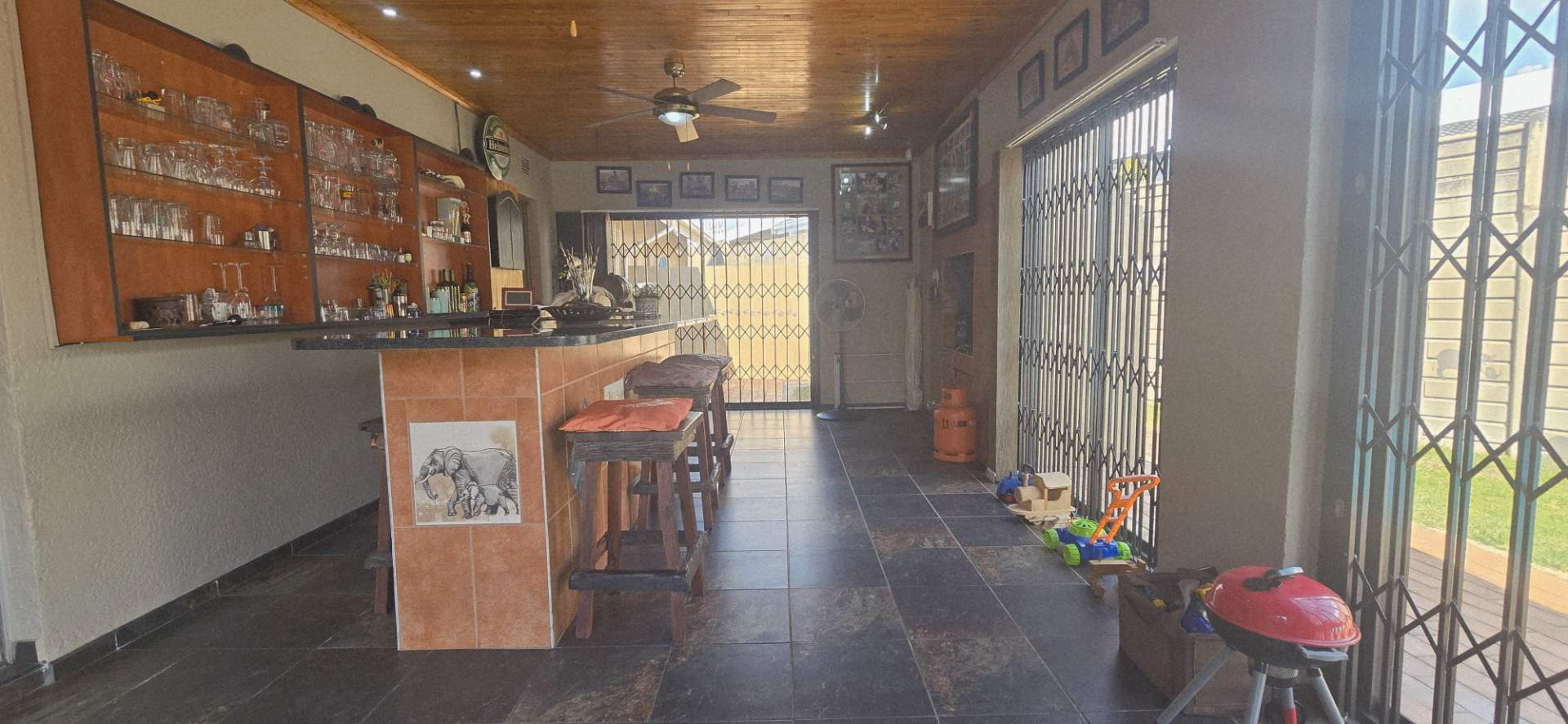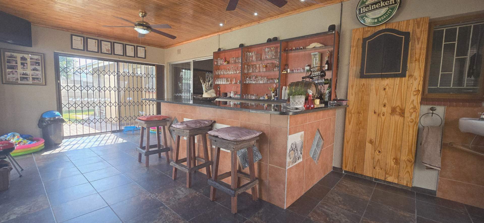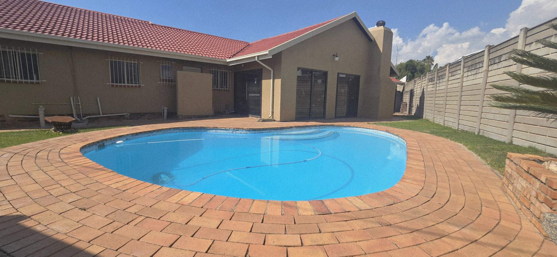The true highlight of this property is the beautiful entertainment area with a built-in bar, which opens up seamlessly to a sparkling swimming pool – perfect for weekend braais and gatherings with friends and family.