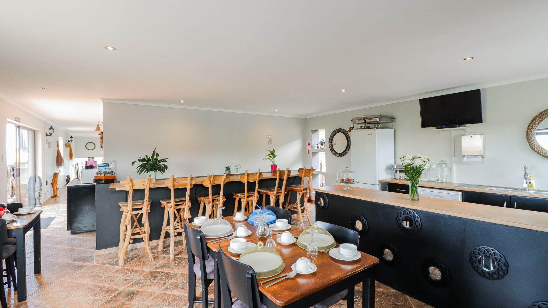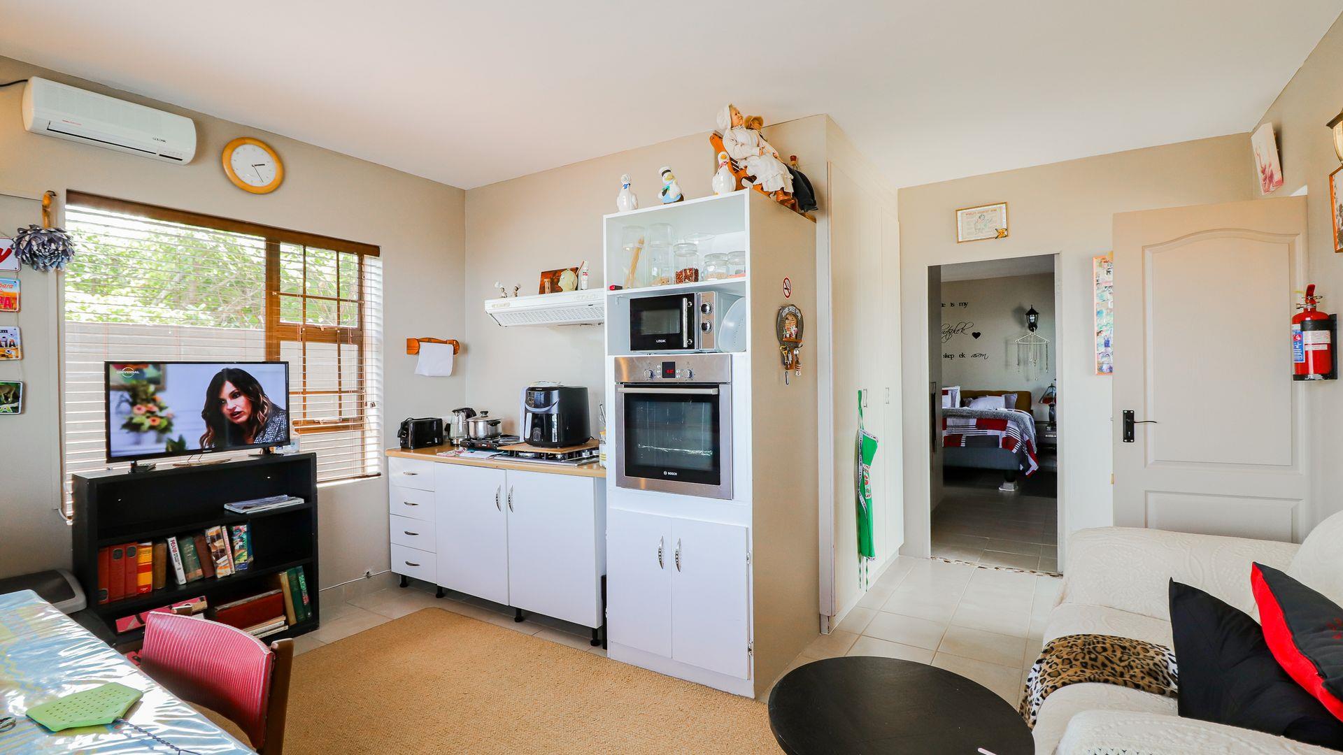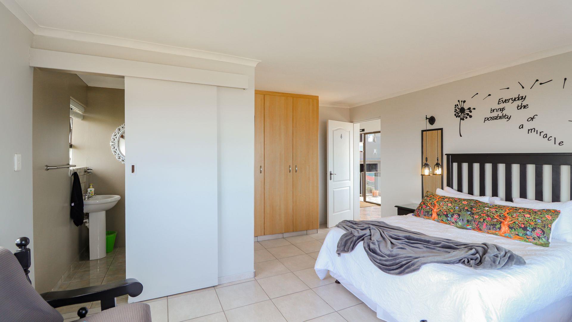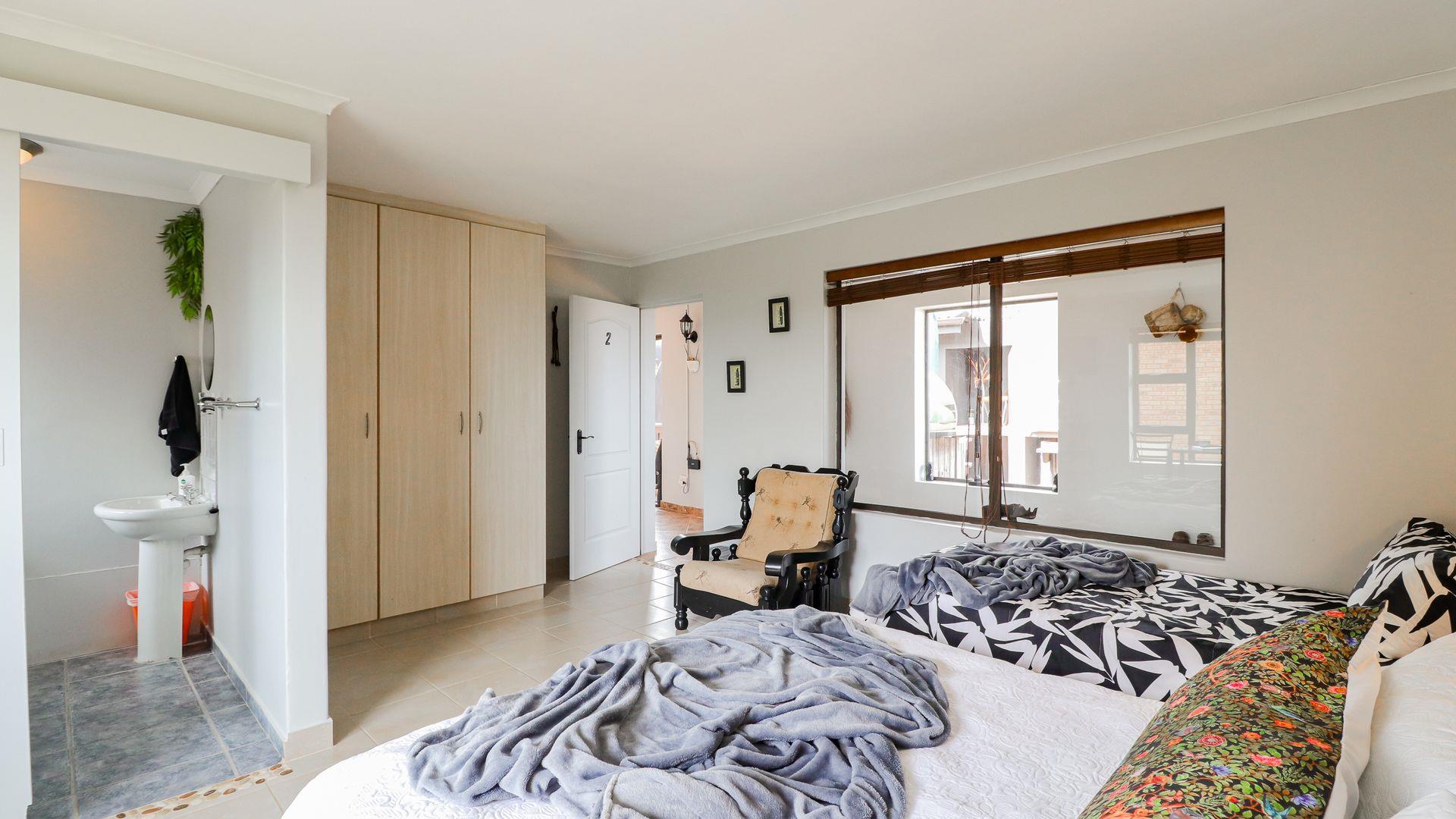 The ground level offers a warm, welcoming entrance leading into a spacious kitchen and comfortable living area perfectly suited for relaxed gatherings. Upstairs, a modern open-plan kitchen and dining space flows effortlessly onto a balcony fitted with a built-in braai, creating an idyllic setting for entertaining with a view.