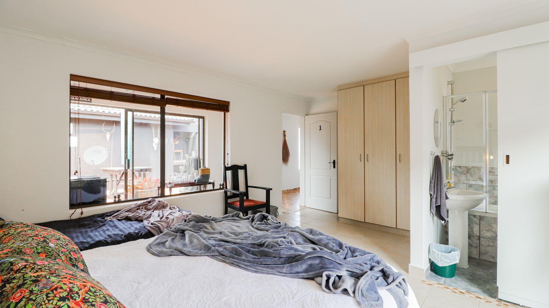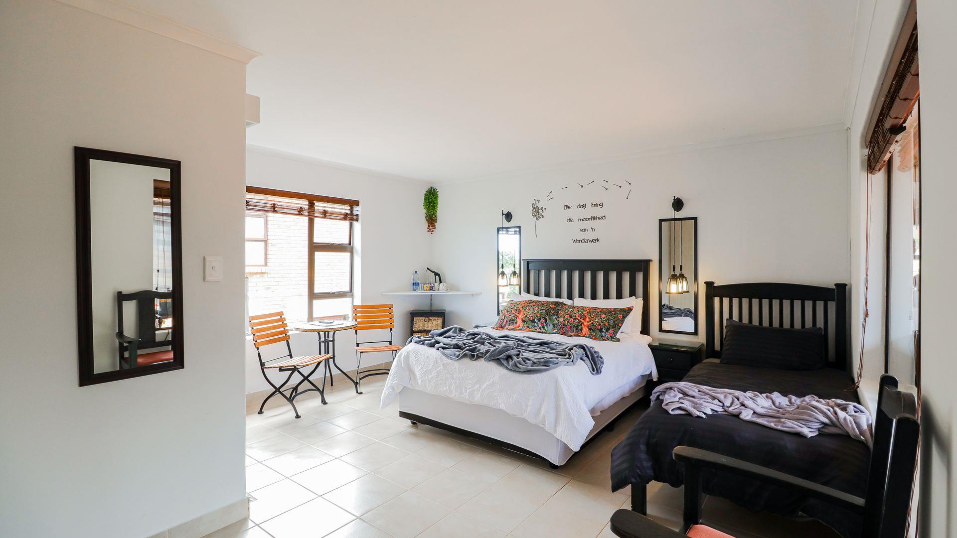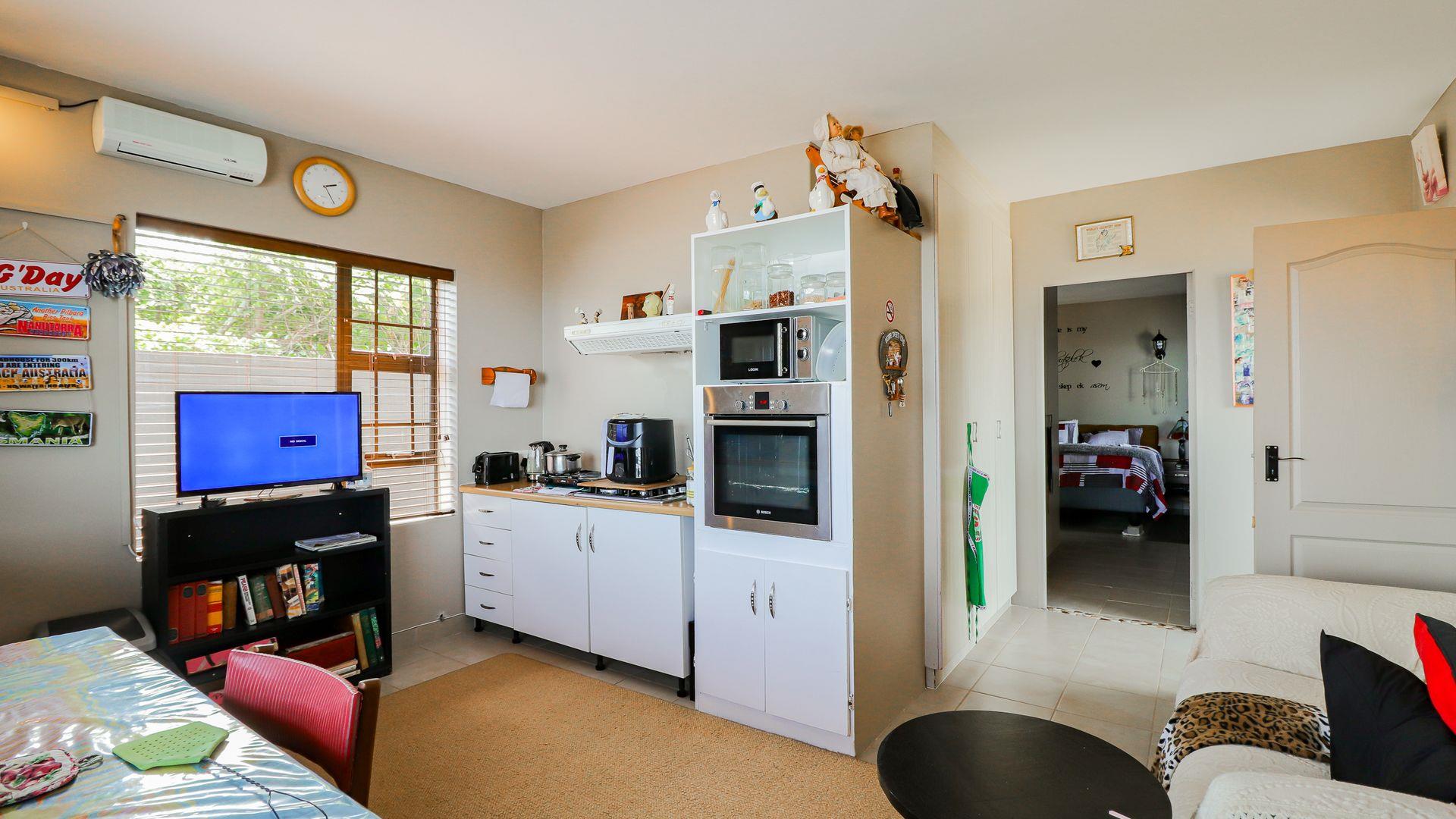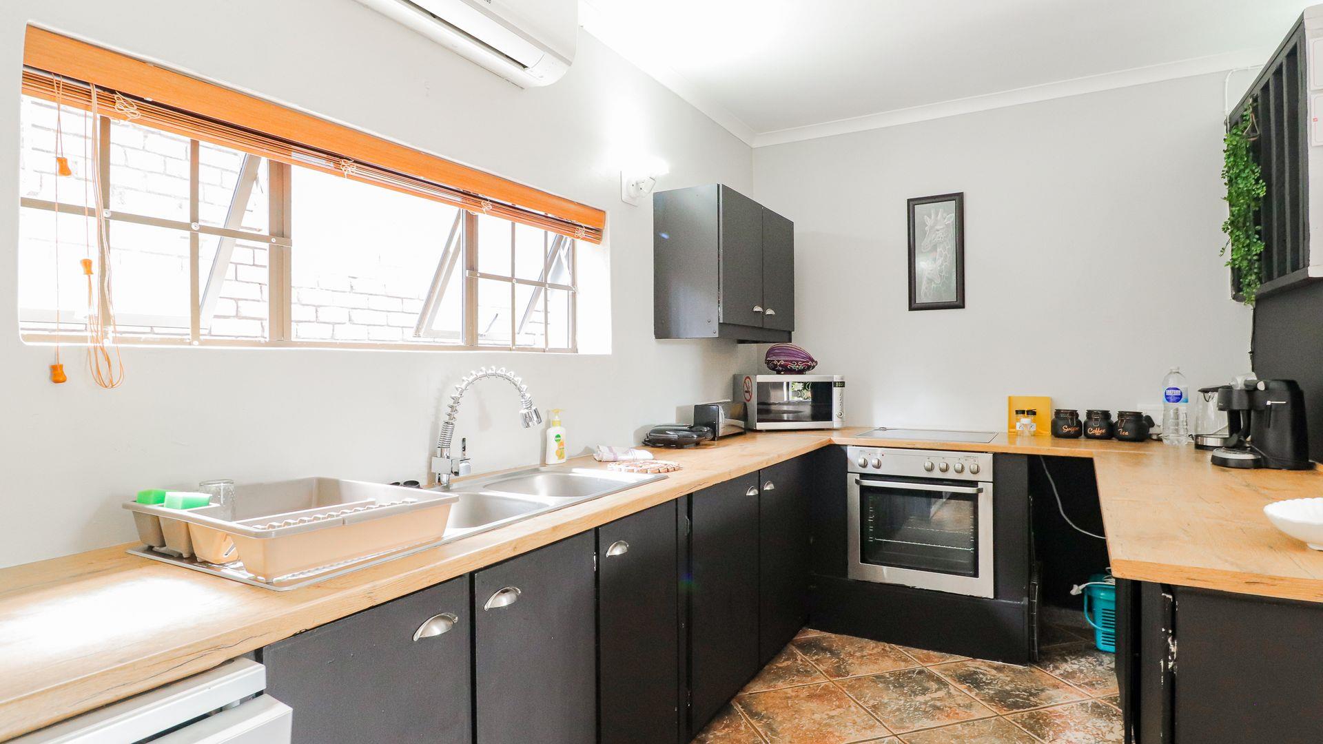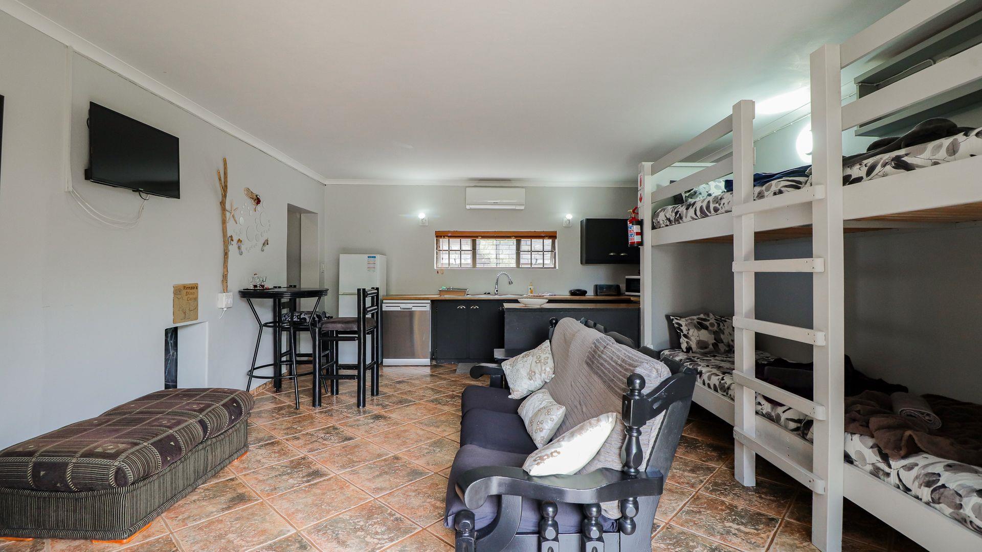 The ground level offers a warm, welcoming entrance leading into a spacious kitchen and comfortable living area perfectly suited for relaxed gatherings. Upstairs, a modern open-plan kitchen and dining space flows effortlessly onto a balcony fitted with a built-in braai, creating an idyllic setting for entertaining with a view.