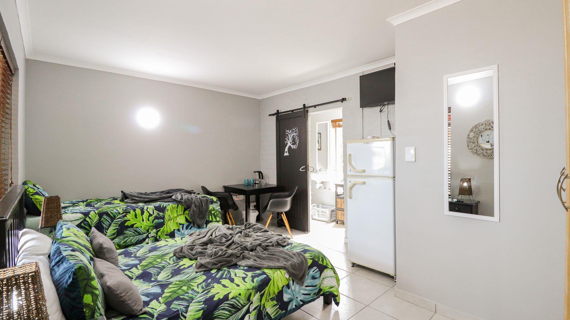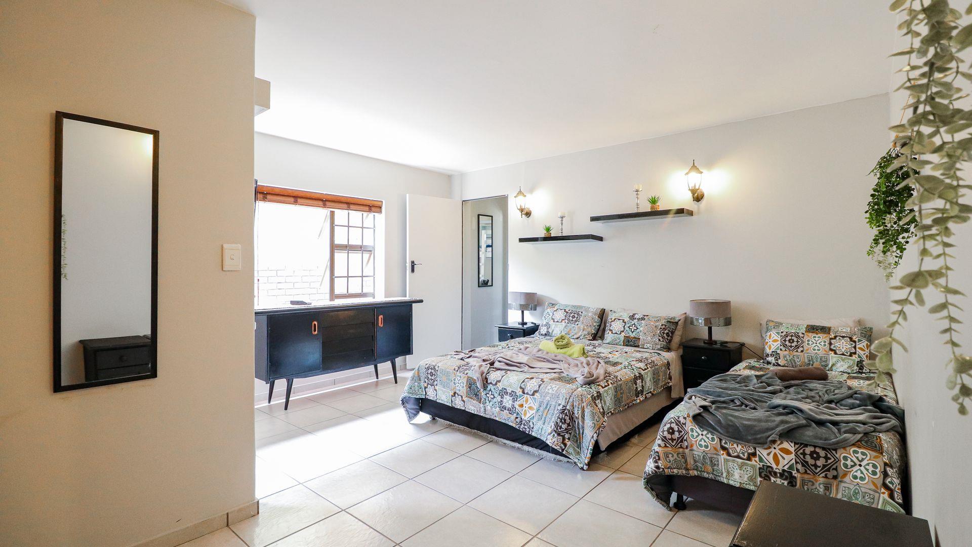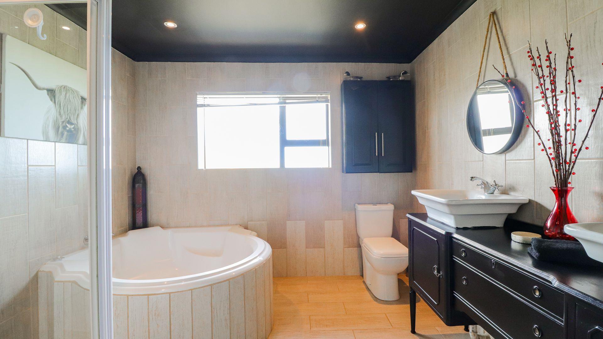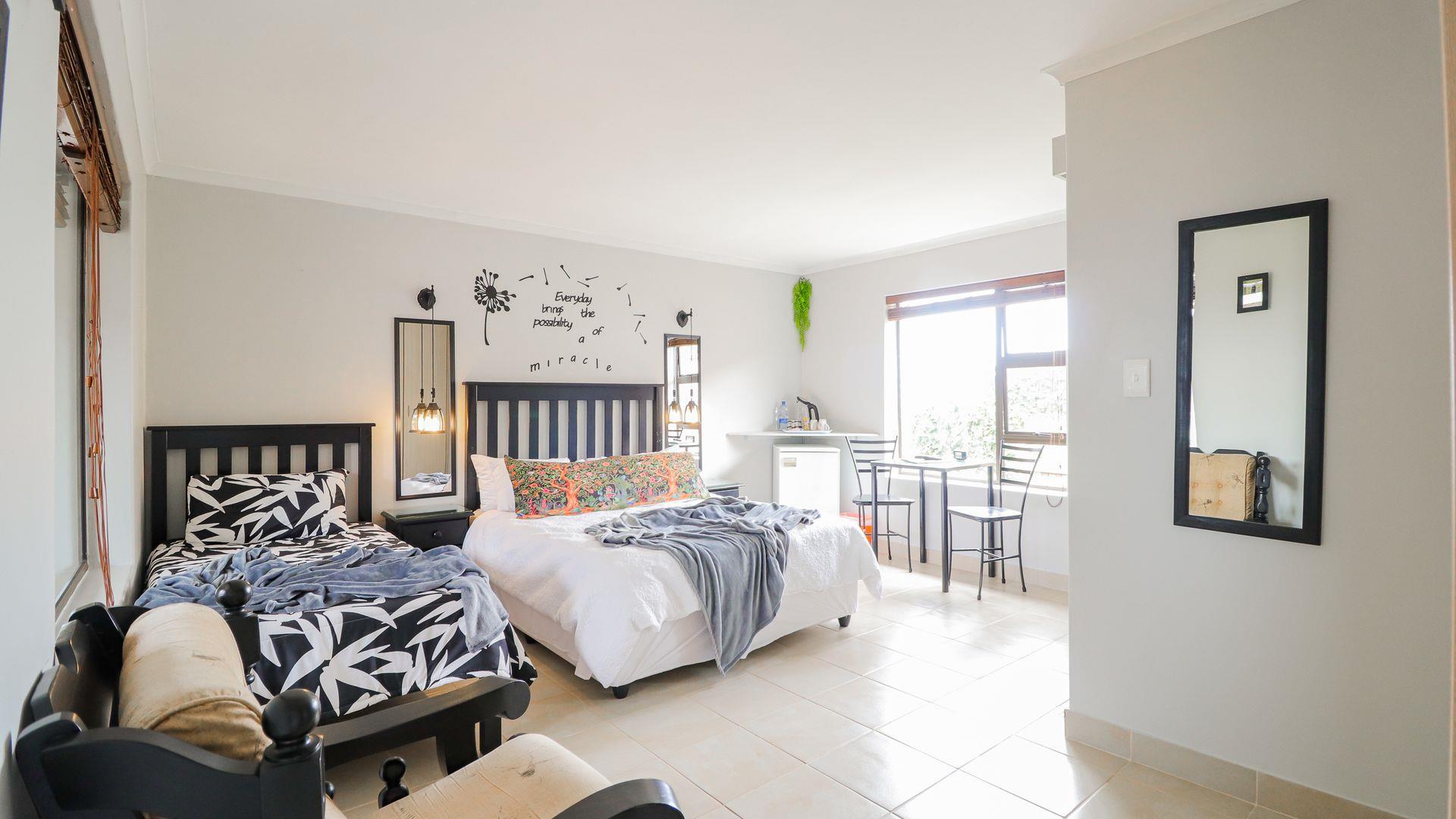 The ground level offers a warm, welcoming entrance leading into a spacious kitchen and comfortable living area perfectly suited for relaxed gatherings. Upstairs, a modern open-plan kitchen and dining space flows effortlessly onto a balcony fitted with a built-in braai, creating an idyllic setting for entertaining with a view.