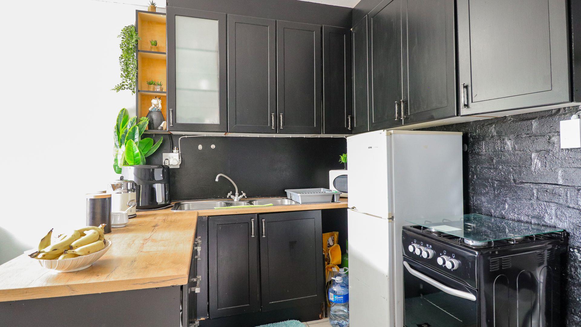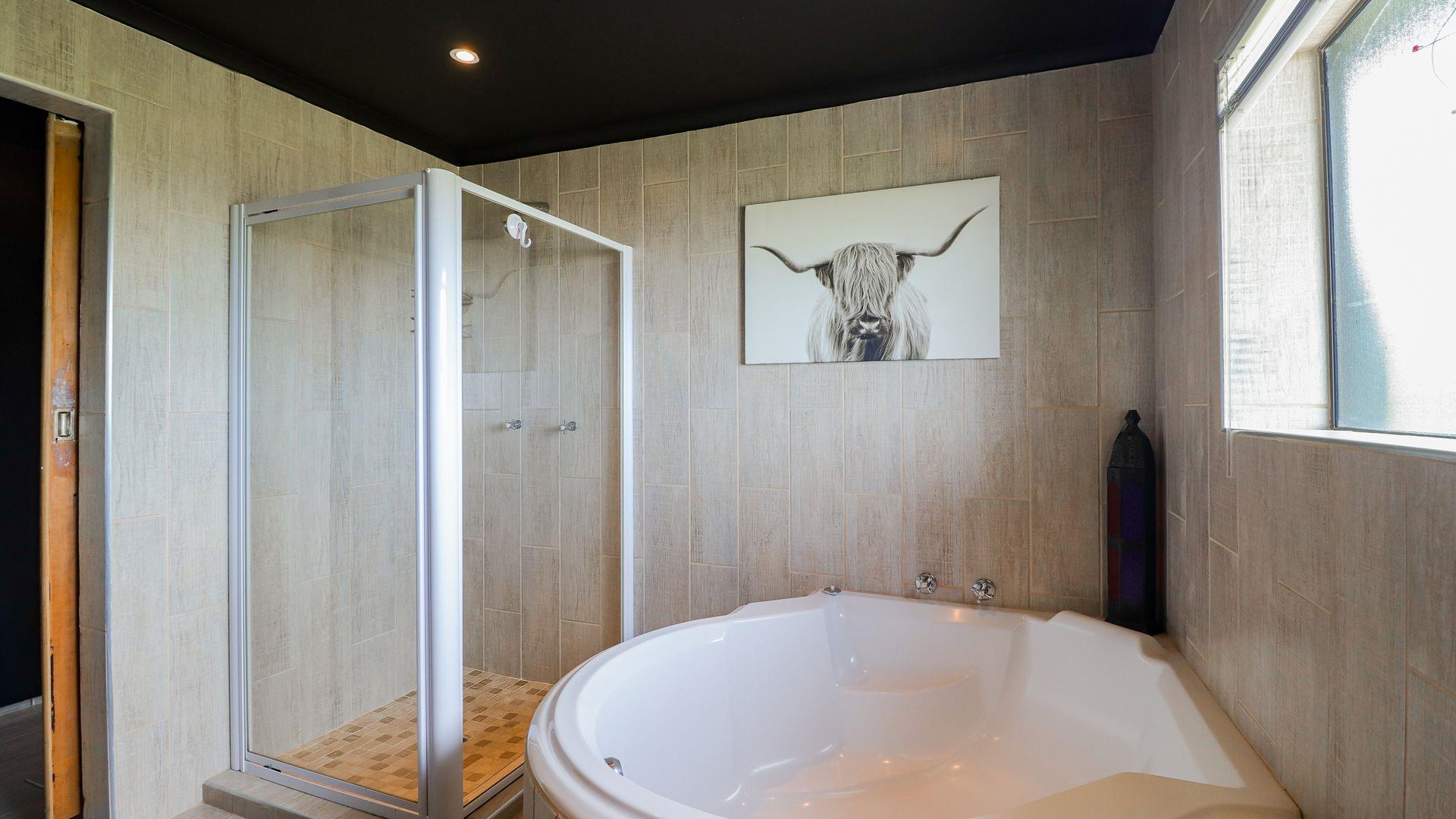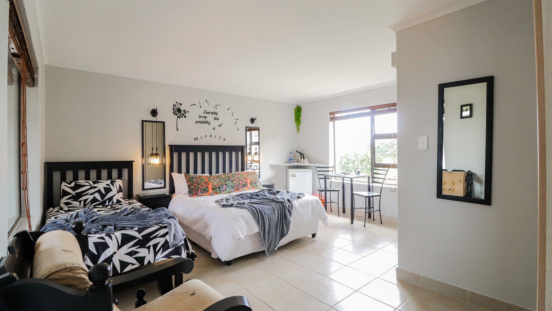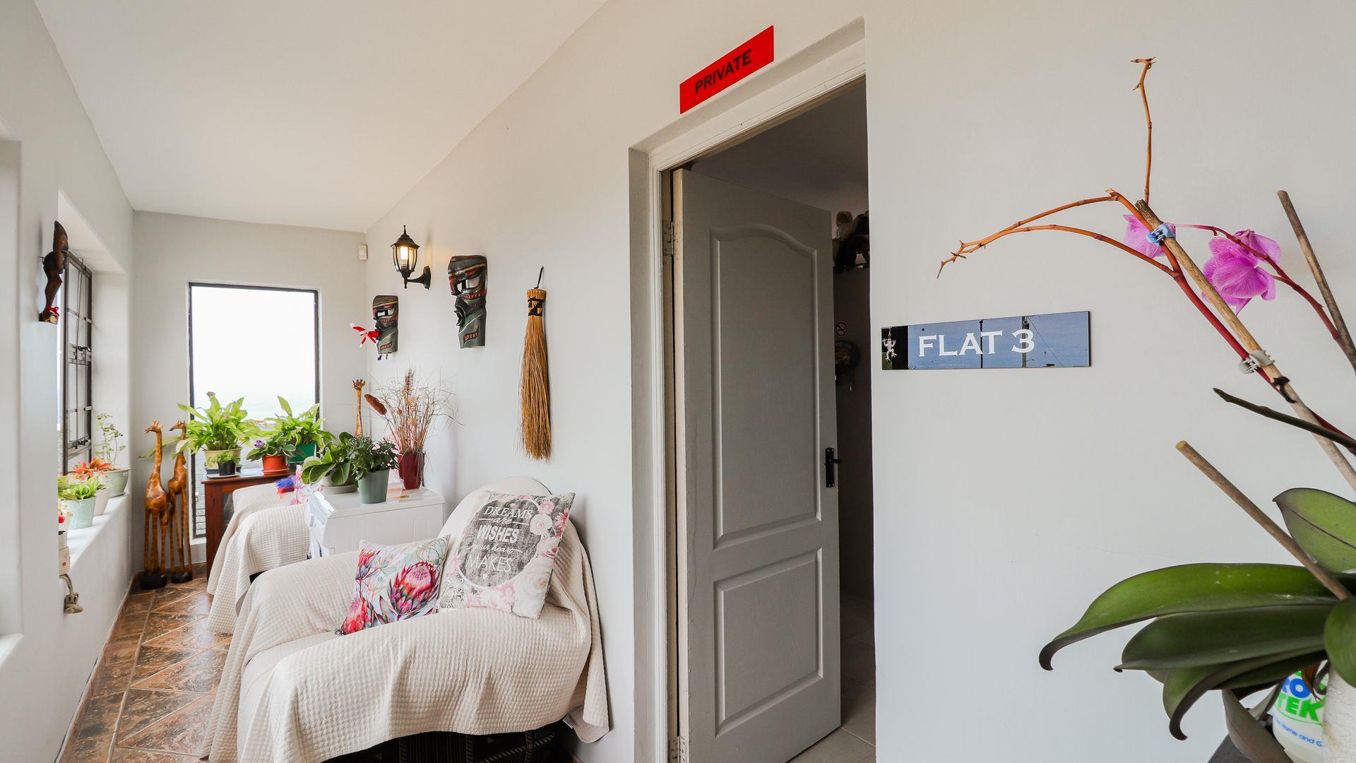 The ground level offers a warm, welcoming entrance leading into a spacious kitchen and comfortable living area perfectly suited for relaxed gatherings. Upstairs, a modern open-plan kitchen and dining space flows effortlessly onto a balcony fitted with a built-in braai, creating an idyllic setting for entertaining with a view.