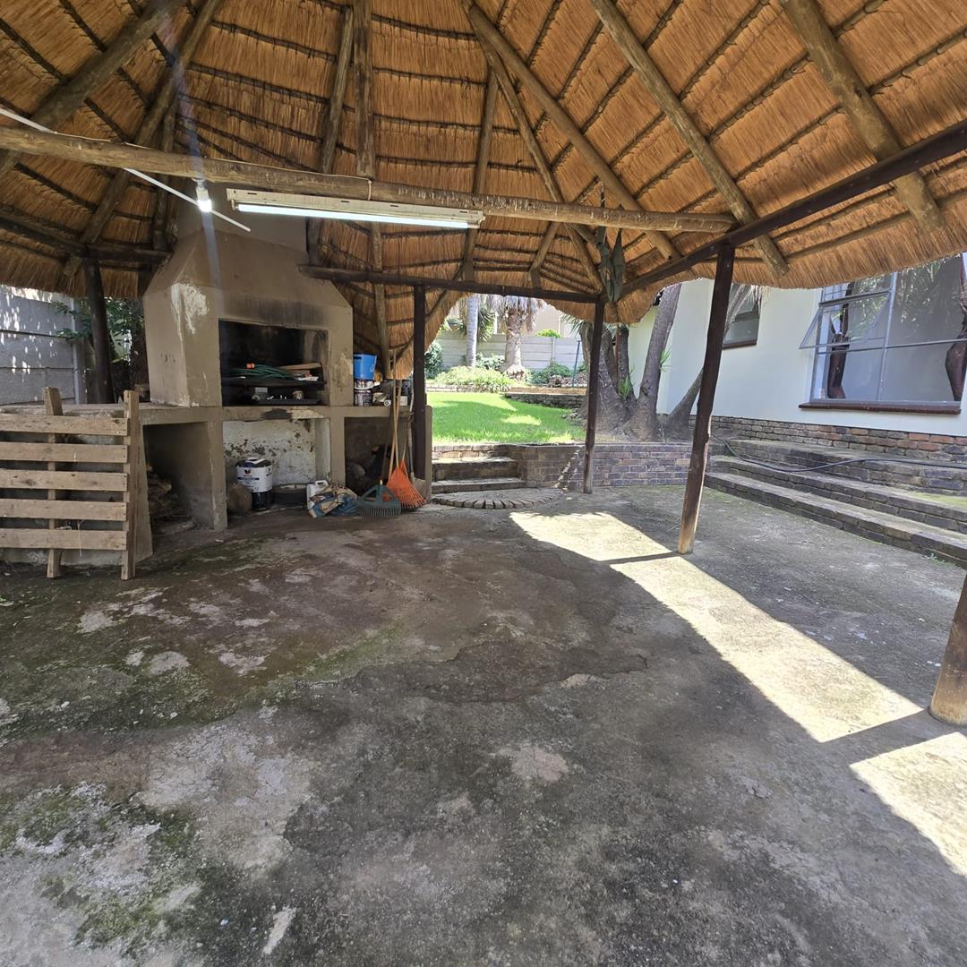 Step outside and enjoy a charming thatched lapa with built-in braai, perfect for entertaining and enjoying outdoor living all year round.