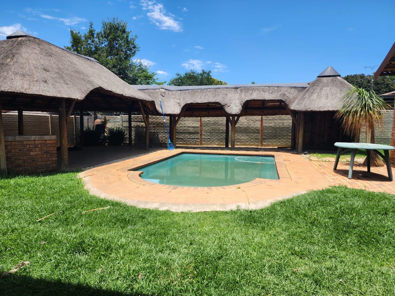 Lovely lapa and swimming pool between garden cottage (will be rented separately) and main house.