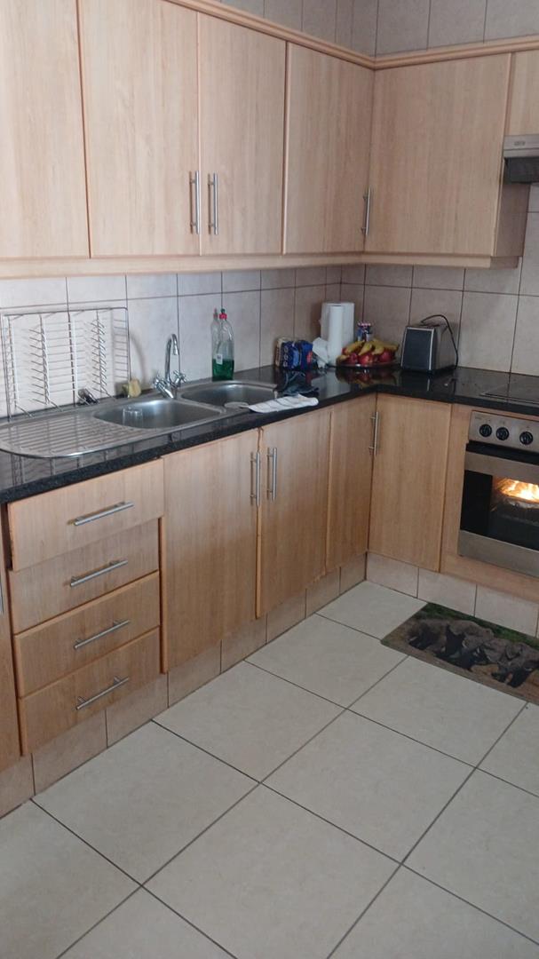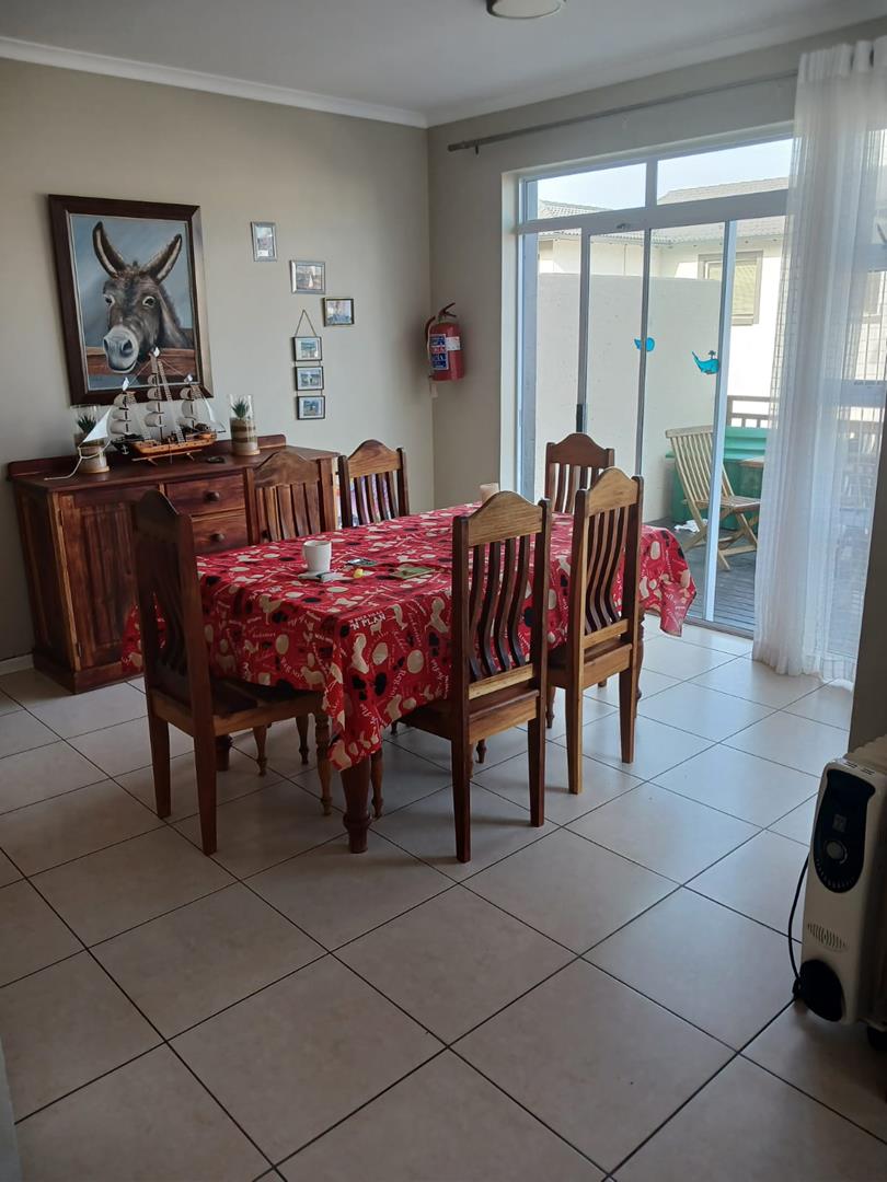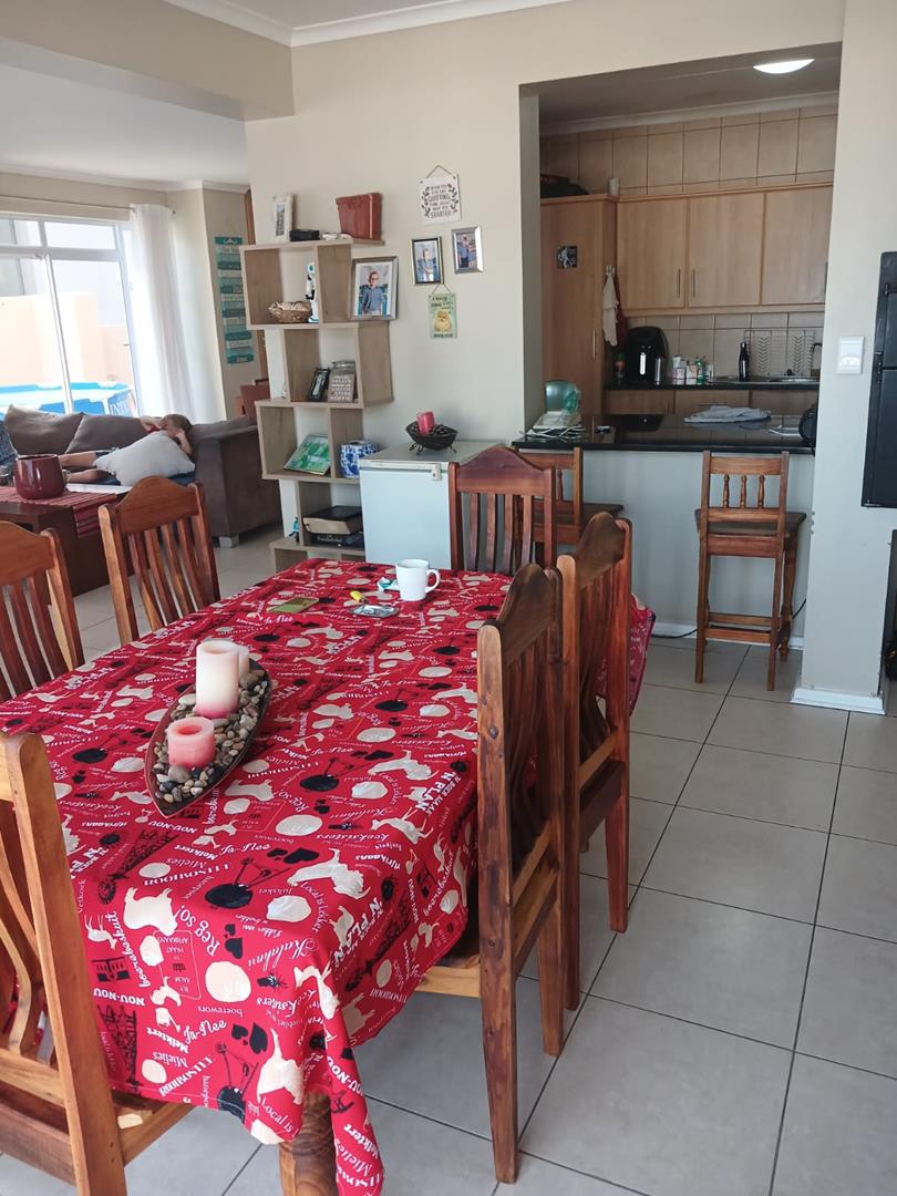 Step inside to an inviting open-plan living area that integrates the lounge, dining room, and modern kitchen with granite countertops. The built-in braai enhances the entertainment flow, with sliding doors opening onto a spacious patio—ideal for relaxed outdoor dining and enjoying the tranquil surroundings.