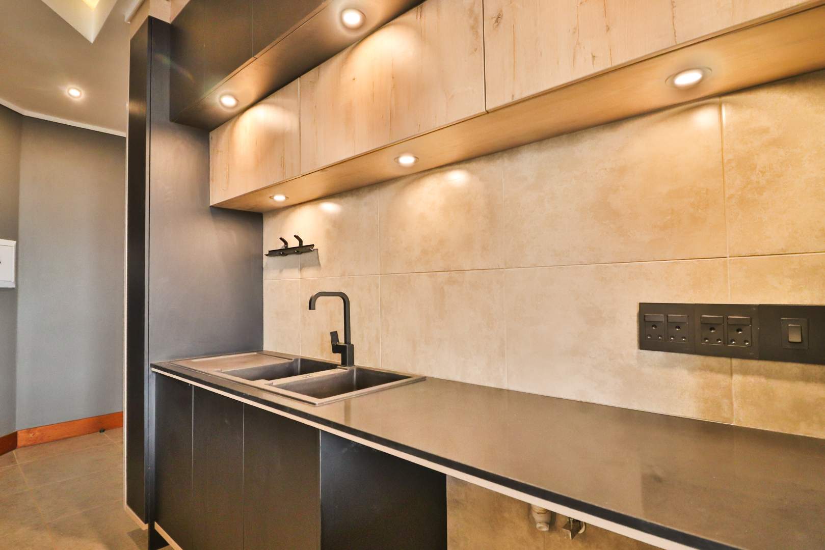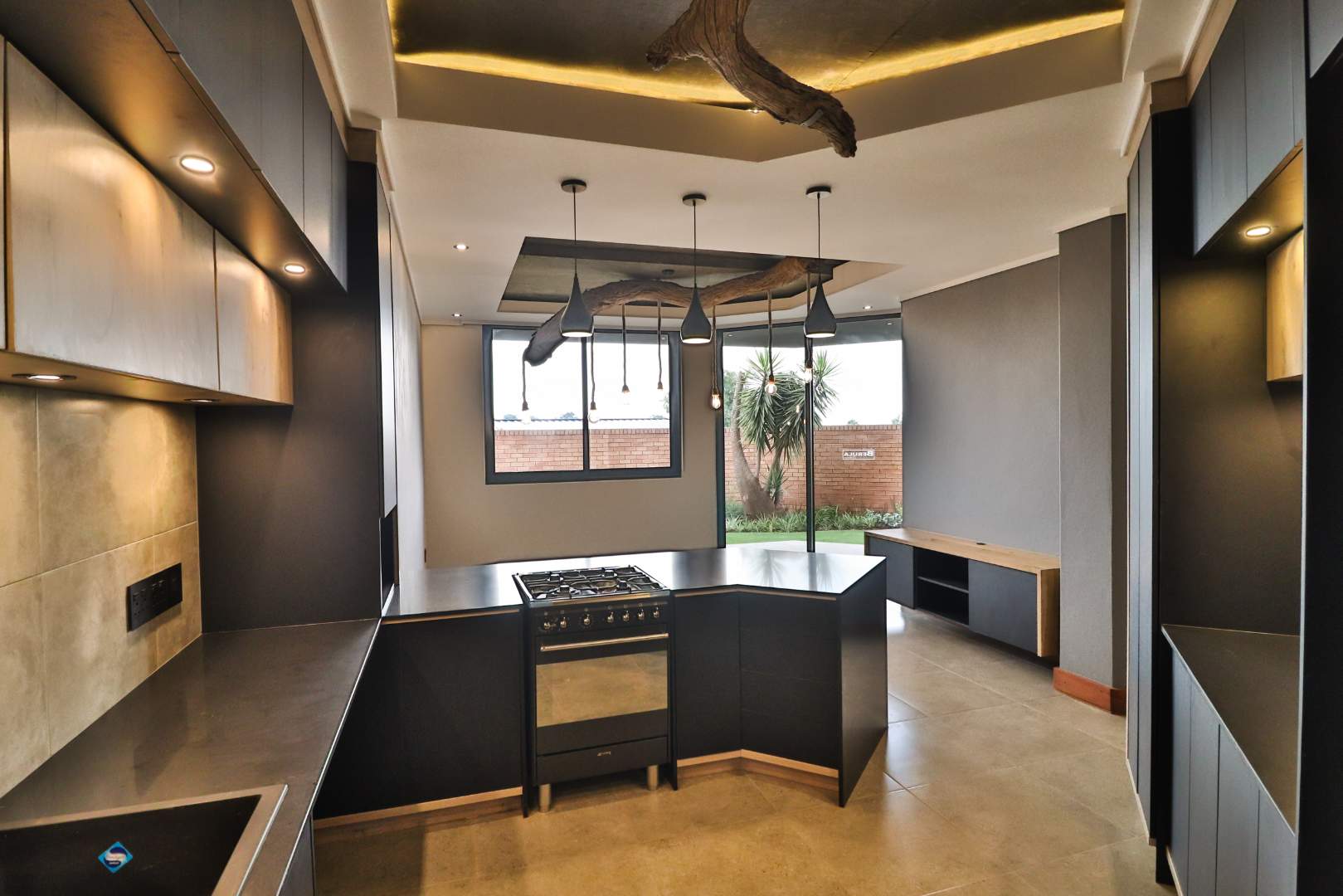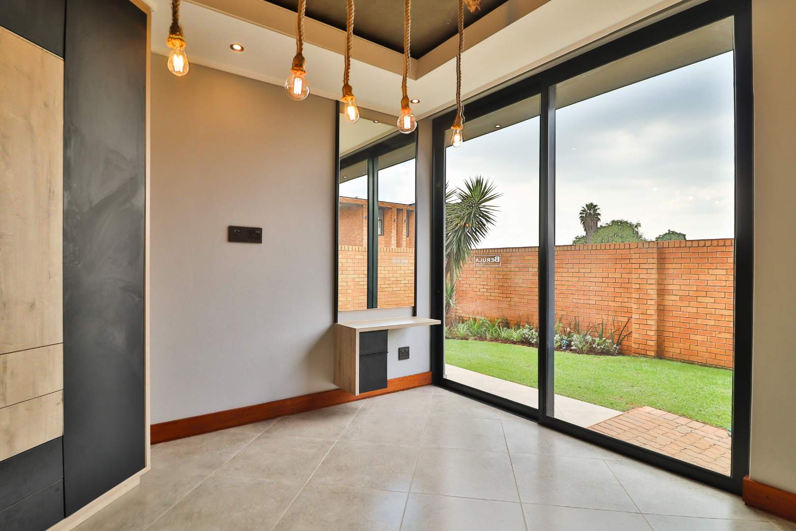 Modern and stylish, brand new corner unit available in Rynfield. This unit offers an open plan lounge (with built-in tv cabinet) leading out to patio with built in braai and private garden. Kitchen with Smeg gas stove, double basin and space for two appliances. Two bedrooms - main bedroom, built-in cupboards, dressing table with mirror and sliding door leading into garden. Second bedroom, built-in cupboards with dressing table and mirror. Two bathrooms - en-suite bathroom with double basin, bath, toilet and shower. Second bathroom - single basin, toilet & shower.
